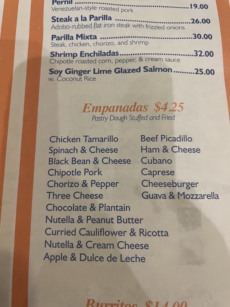Pressed wrap of turkey, plantains, bacon, grilled onions and mozzarella.